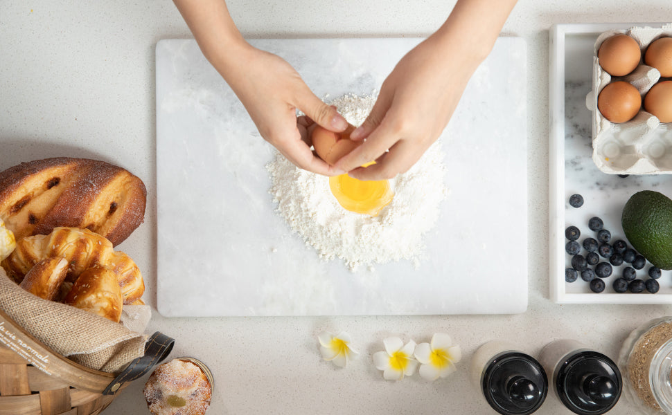 Prized by professional pastry chefs, marble is the ideal surface for rolling out the dough, as the stone remains cooler than room temperature.